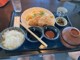 昼食はアジフライ定食(笑)